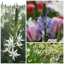 Een bijenvriendelijk mengsel van biologische bloembollen bestaande uit: Camassia leichtlinii ‘Caerulea’ (5), Leucojum aestivum (5), Fritillaria meleagris (mix paars en wit) (20) 1 zak met 30 biobollen.